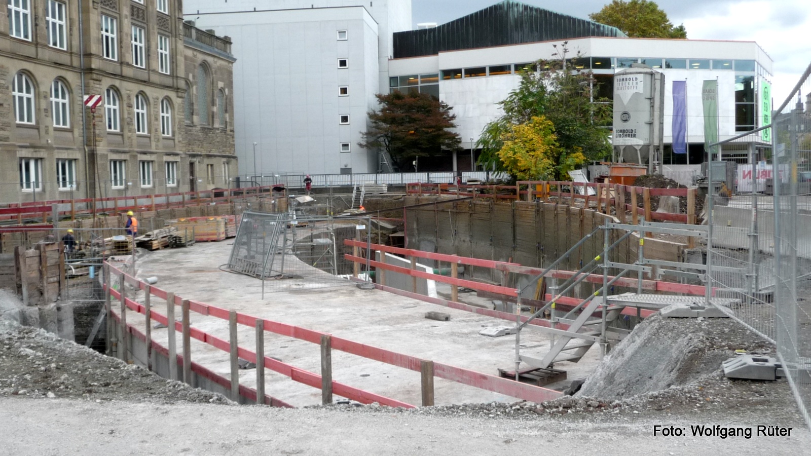 Die Nesenbachkanal-Baustelle neben dem Königin-Katharina-Stift