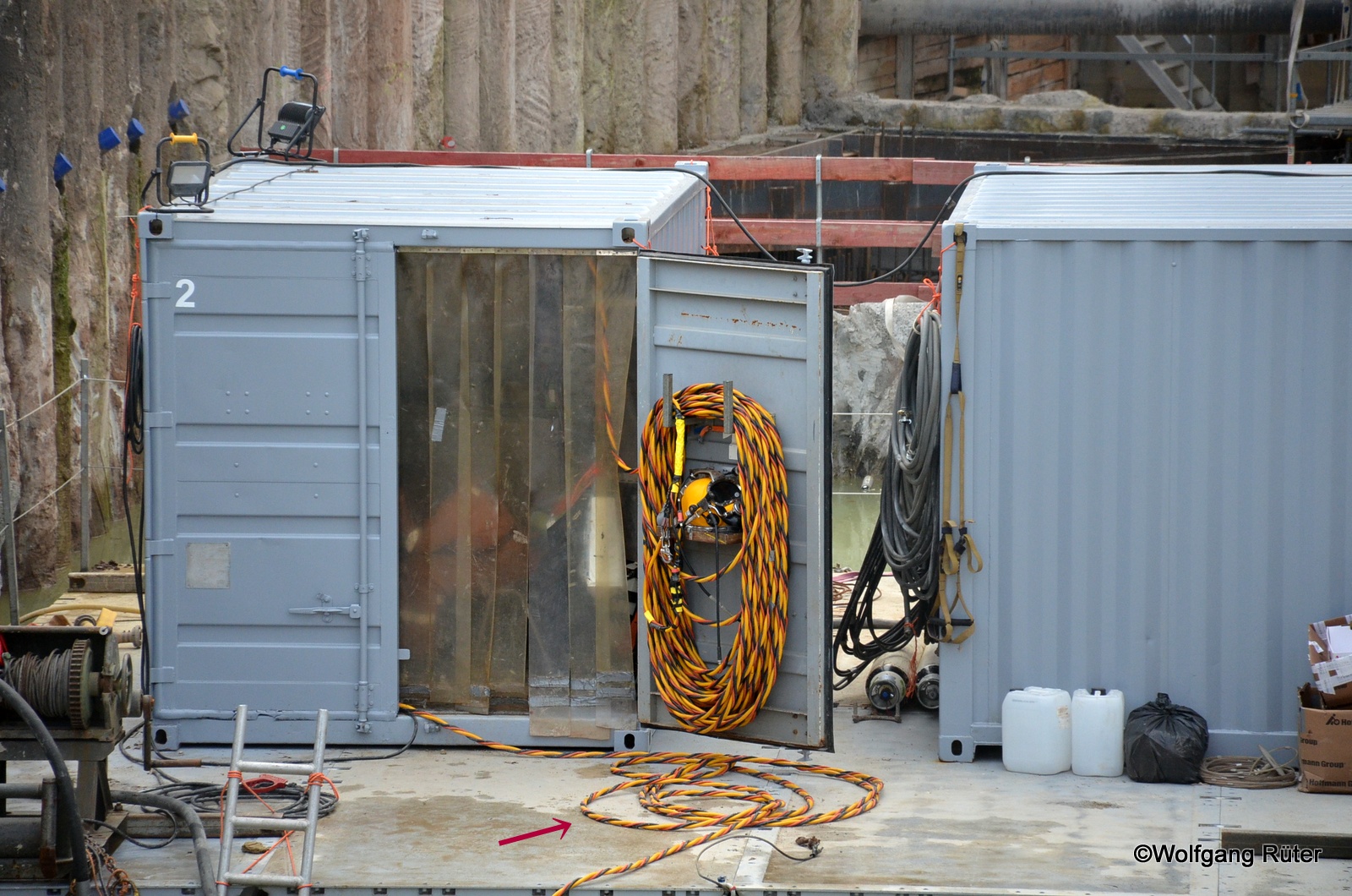Auf der Arbeitsplattform mit den beiden Containern ist es ruhig