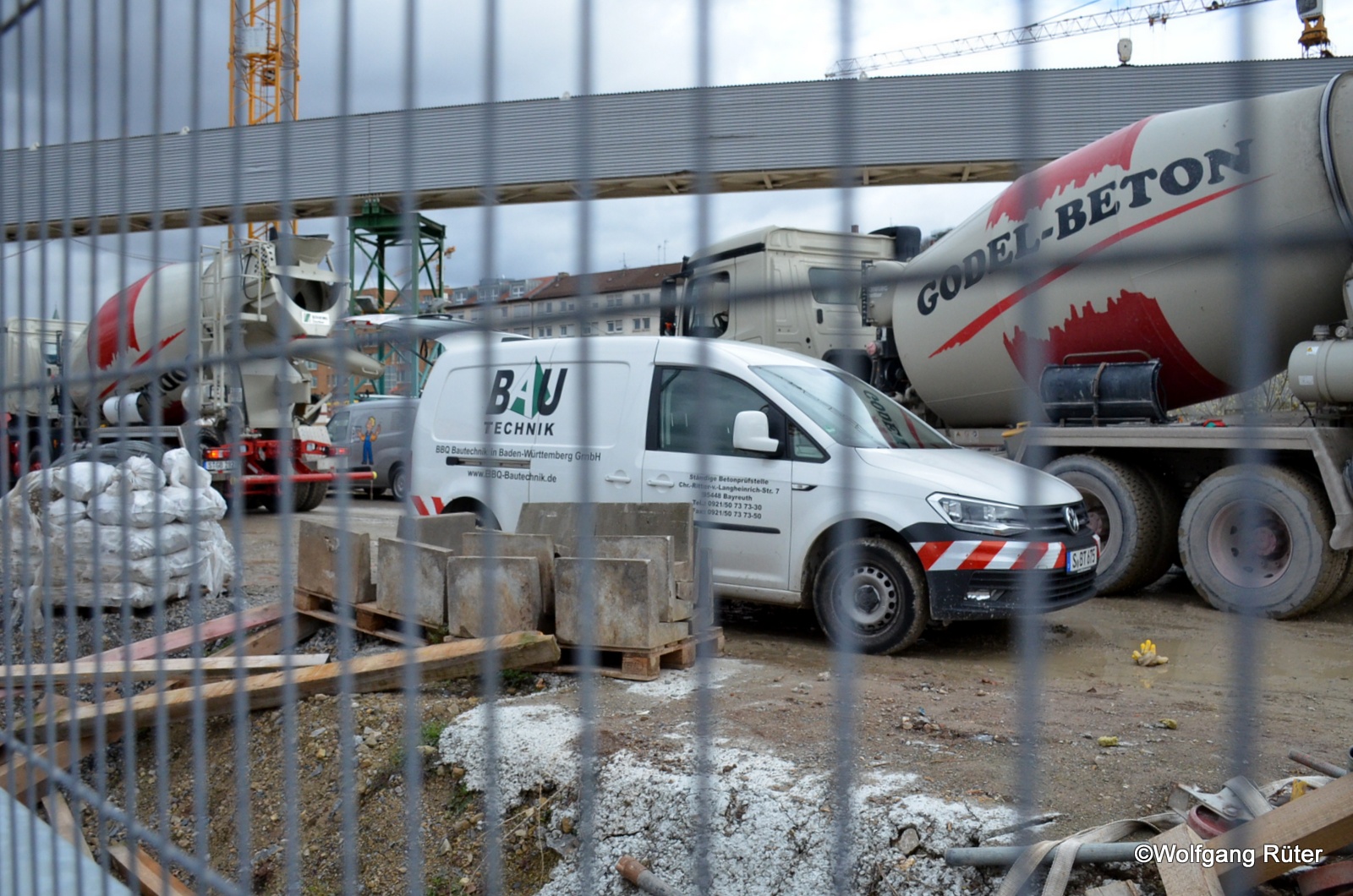 Ein Fahrzeug der "Ständigen Betonprüfstelle" ist vor Ort
