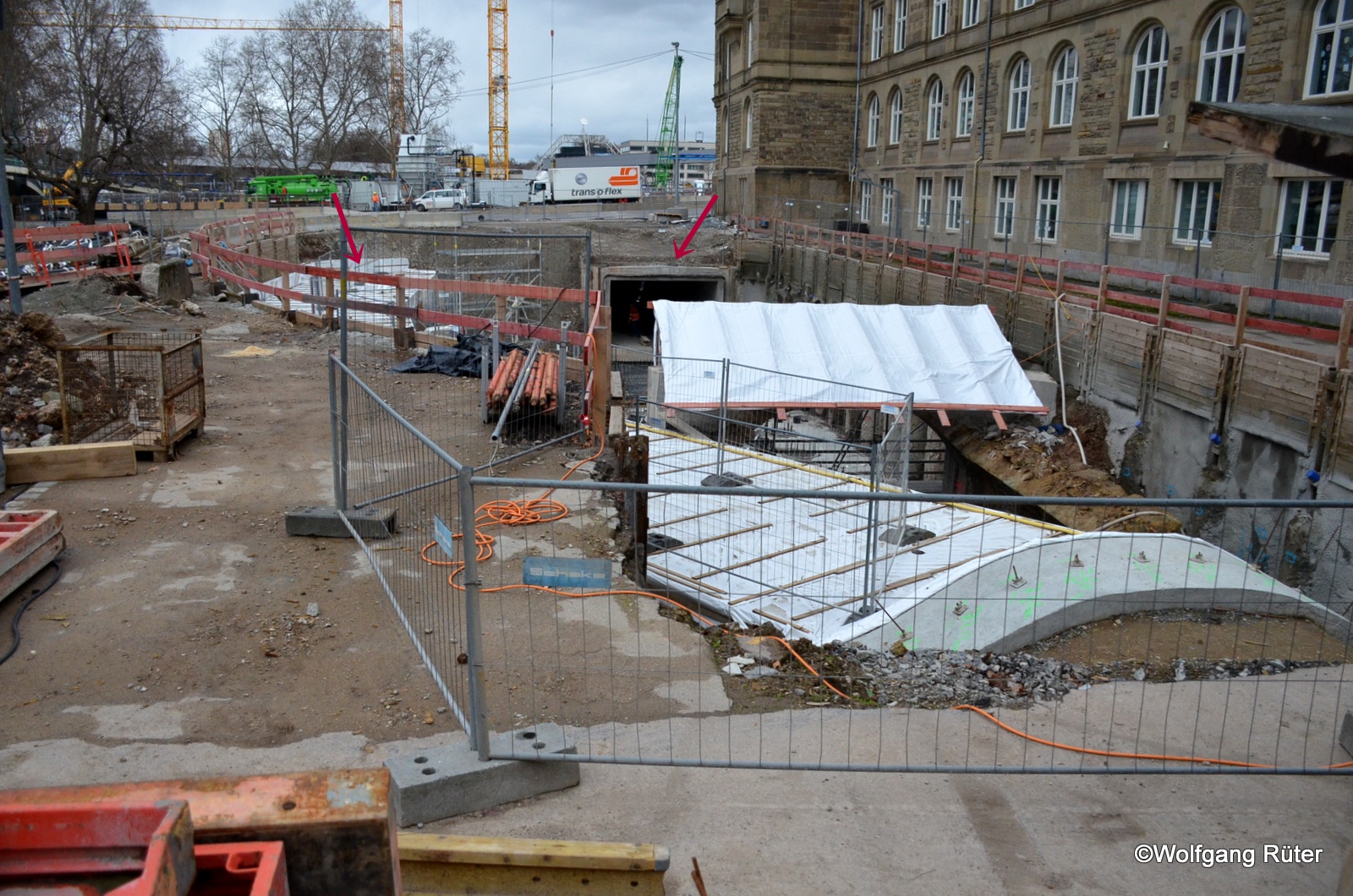 Nesenbachkanal-Baustelle auf der gegenüberliegenden Seite der Schillerstraße neben dem Königin-Katharina-Stift