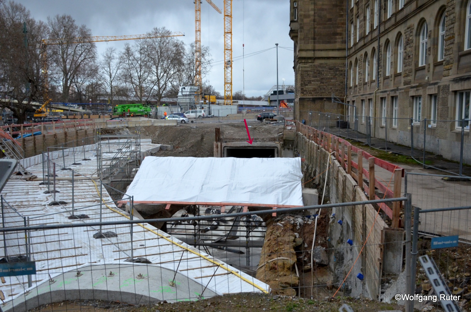 Nesenbachkanal-Baustelle auf der gegenüberliegenden Seite der Schillerstraße neben dem Königin-Katharina-Stift