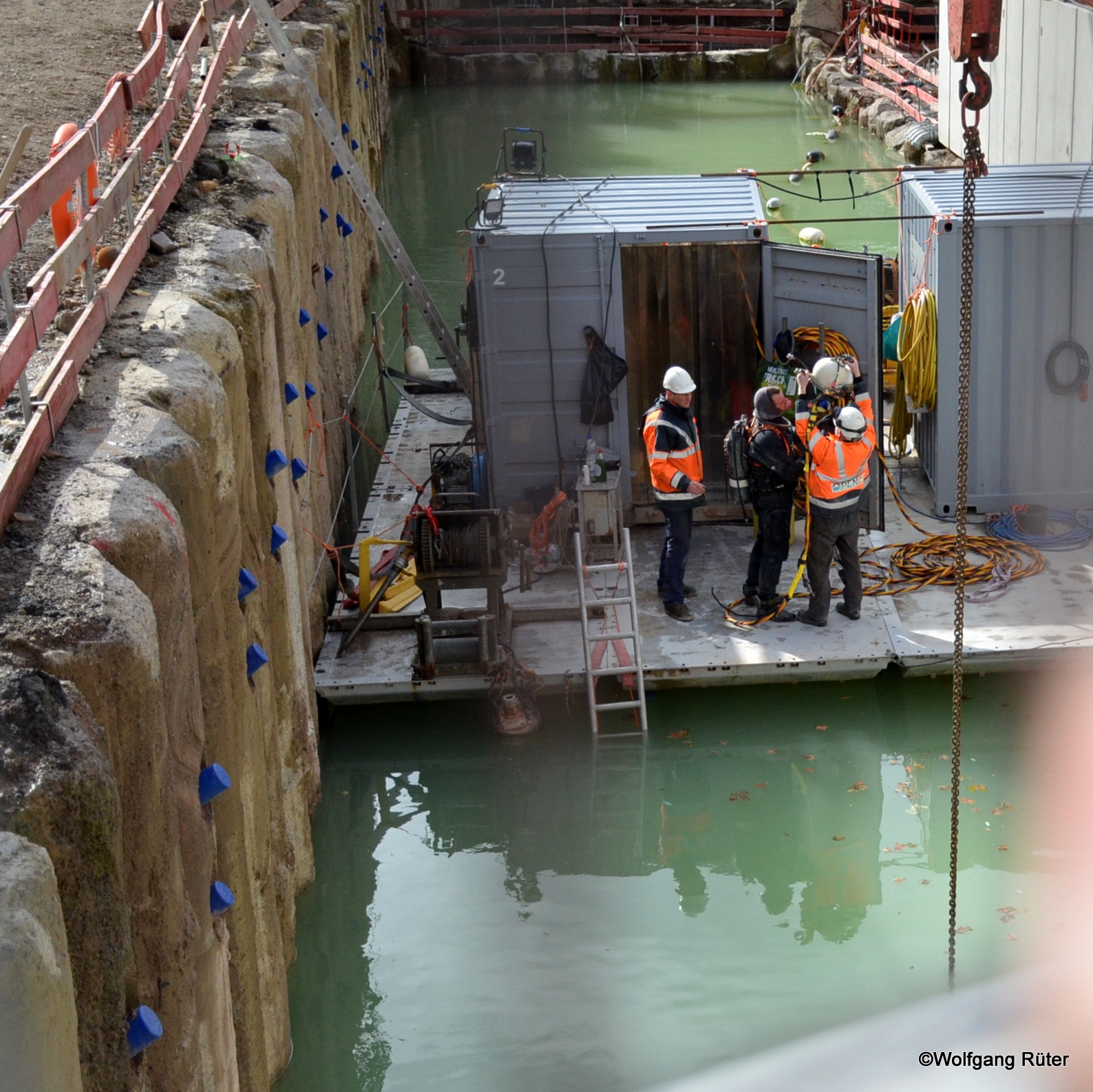 Nesenbachdüker-Baustelle: Betonieren der Kanalsohle unter Wasser hat bekonnen