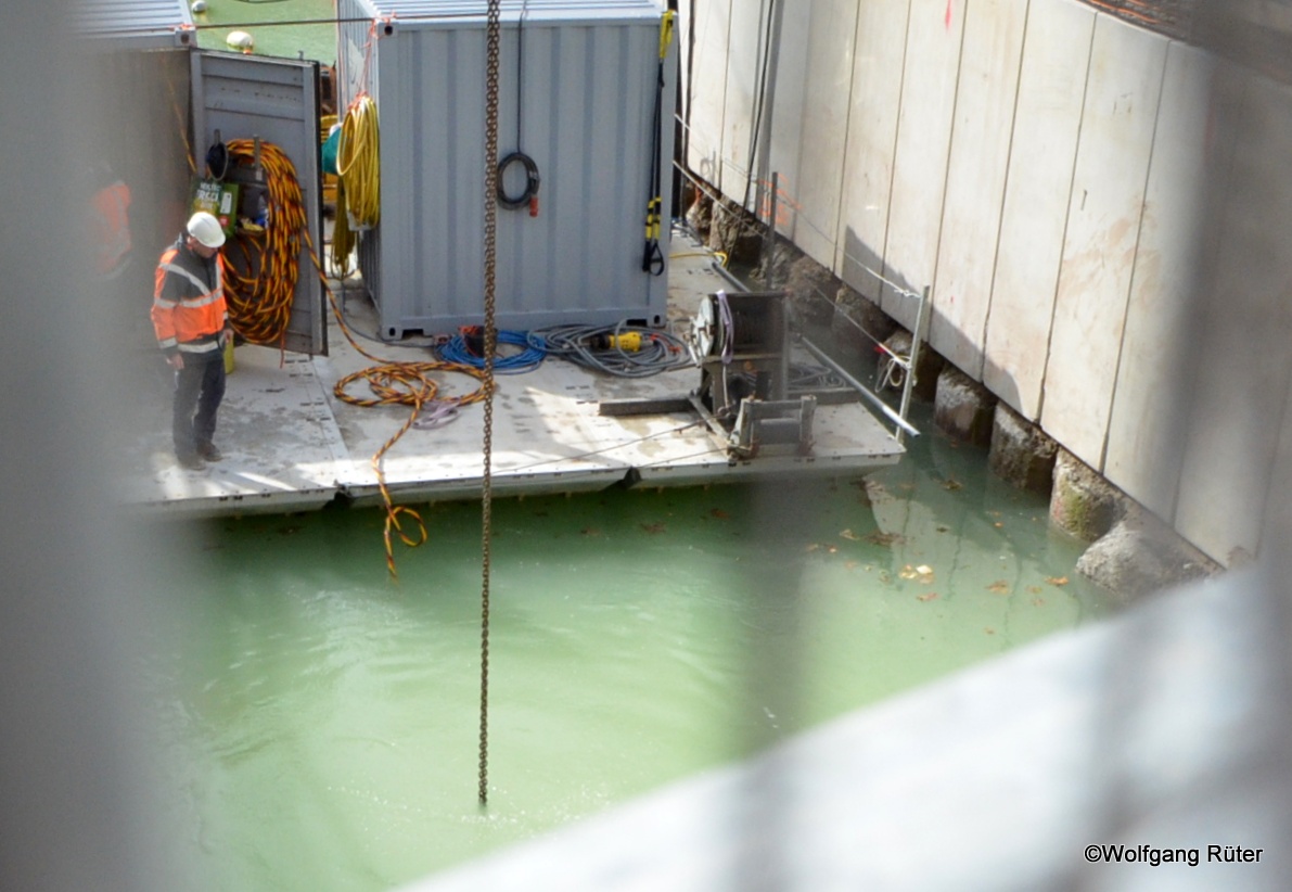Nesenbachdüker-Baustelle: Betonieren der Kanalsohle unter Wasser hat bekonnen