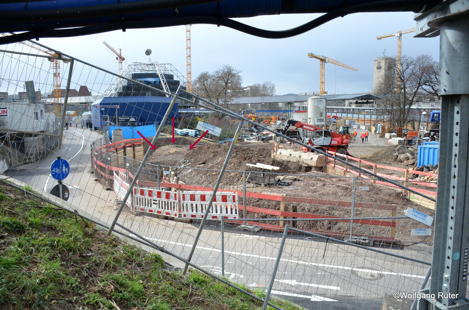Baustelle Nesenbachkanal zwischen Planatarium und Wullesteg, links der freigelegte alte, gemauerte Nesenbachkanal