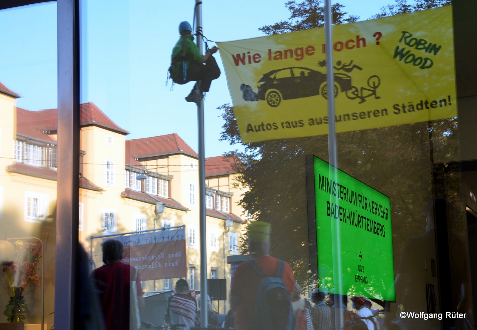 Spiegelung in der Glasfront des Verkehrsministeriums Baden-Württemberg
