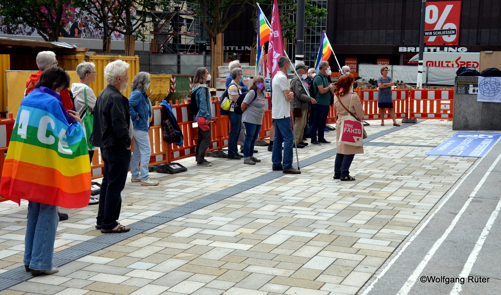 Teilnehmende des "Flaggentags" vor dem Stuttgarter Rathaus am 08. Juli 2021