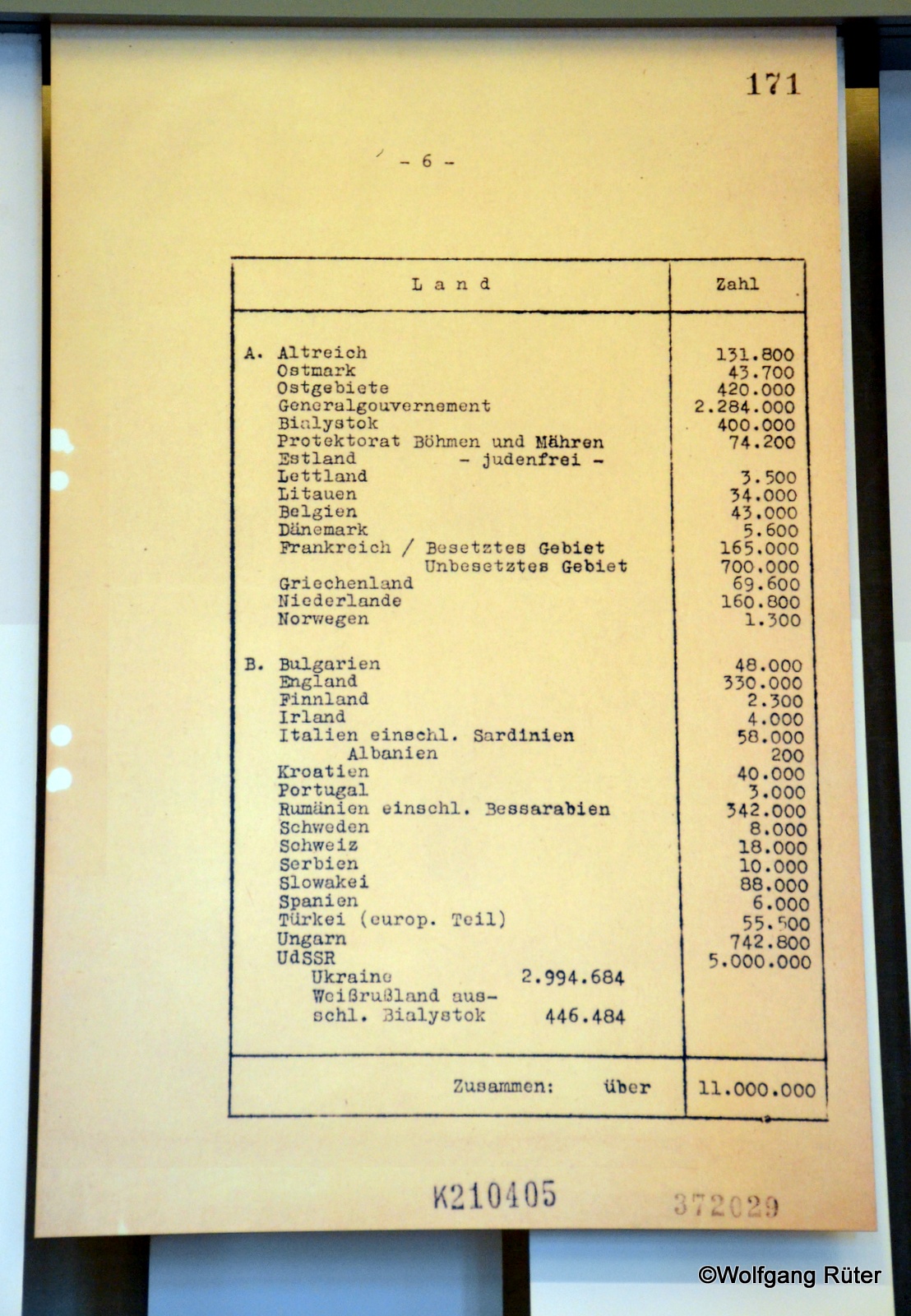 Tafel mit Zahlen der ermordeten Juden nach Ländern geordnet, insgesammt über 11.000.000 Menschen