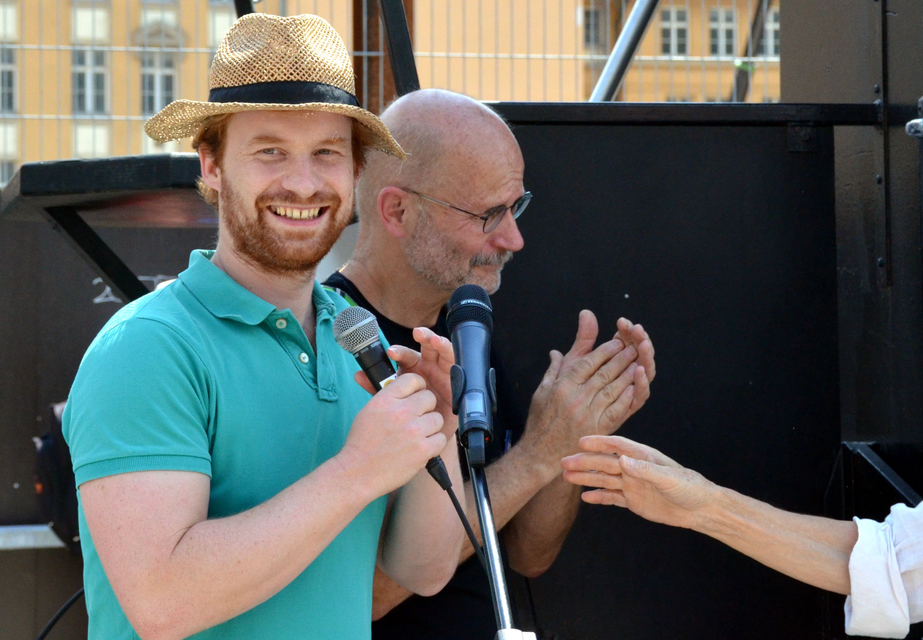 Gleich wird Stadtrat Hannes Rockenbauch etwas zur Gruben-Feier sagen