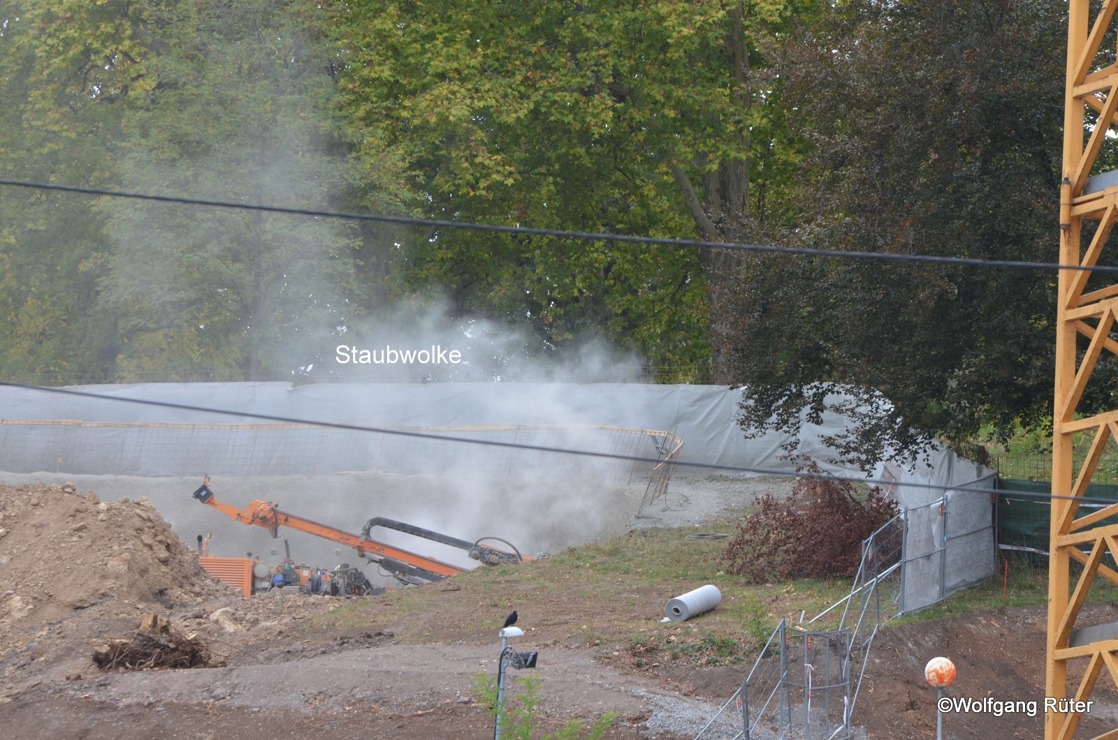 Die staubintensive S21-Tunnelportal-Baustelle am Rosensteinhang direkt neben dem hochführenden Zanthweg